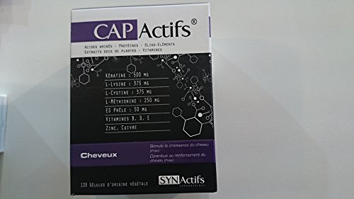 -. Binding : Health and Beauty -. Brand : CAPActifs -. EAN : 3401520288300 -. Feature : Dietary supplement that helps hair growth, strengthening the hair at its normal pigmentation as well as normal hair maintenance. / Box of 120 capsules of plant origin. / Phase 1 and Phase 2 included in box. / With Keratin (Phase 1 500 Mg) / Made in France -. IsAdultProduct : 0 -. Label : SYNActifs -. Manufacturer : SYNActifs -. Model : 6428 -. MPN : SYNAC-CAPACTIFS120-0215 -. PackageQuantity : 1 -. PartNumber : SYNAC-CAPACTIFS120-0215 -. ProductGroup : Health and Beauty -. ProductTypeName : HEALTH_PERSONAL_CARE -. Publisher : SYNActifs -. Studio : SYNActifs -. Title : CAPActifs Hair Regrowth Capsules with Keratin Phase 1 & Phase 2- 120 Capusles