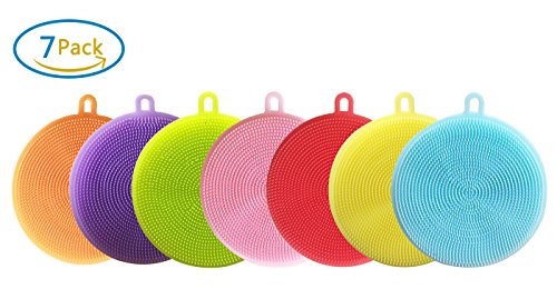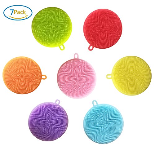 7 Pack Silicone Sponges, Food-Grade Antibacterial Silicone Dishwashing Scrubber, Multipurpose Non Stick Mildew-Free Brush for Washing Pot, Pan, Bowl, Fruit and Vegetables