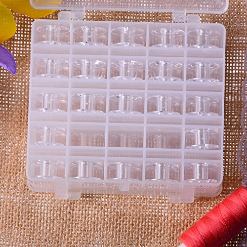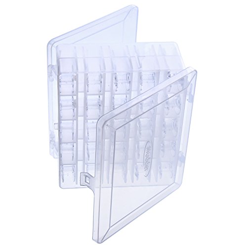 - Quantity: includes 1 piece of double layer storage case and 50 pieces of clear bobbins, the bobbin's size is approx. 2 x 2 x 1.15 cm, and the case size is 12.4 x 10.5 x 4.3 cm