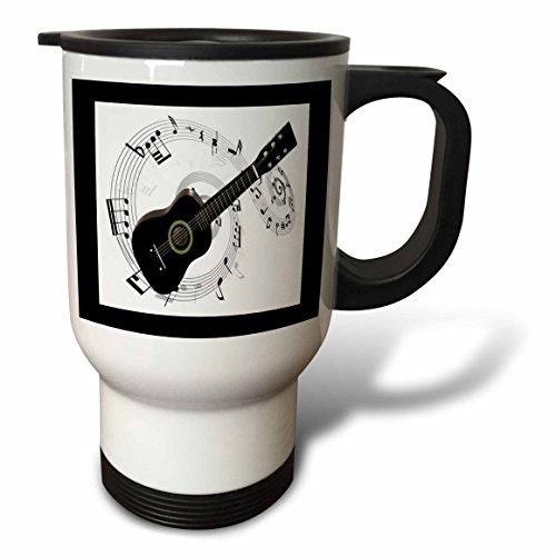 3dRose tm_50912_1 Music Notes and Guitar Travel Mug, 14-Ounce, Stainless Steel