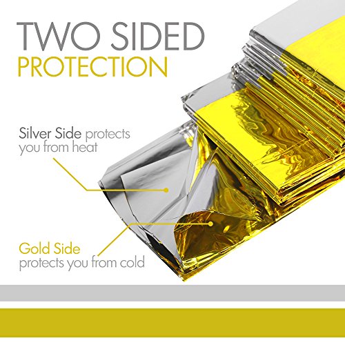 - COMPACT & VERSATILE: Lightweight and compact, there’s no reason for you to not bring an emergency blanket on your trips! Its compact design means it won’t take up much storage space, so there’s still room for other essential items in your bag. You can use this emergency blanket as insulation, portable shelter, or ground cover. The perfect item for Emergency Kits, Go-Bags, and Bug-Out Bags!