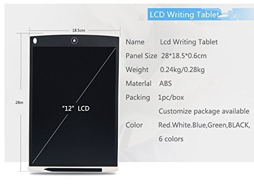 Brand Name:Sky Toys Item Weight:12 ounces Product Dimensions:11 x 0.1 x 7.5 inches Batteries:1 CR2 batteries required. (included) Color:Black with Pink Pouch Size:12" Screen Manufacturer Part Number:ASYW1012A-PINK ASIN:B079Z2CG9R Customer Reviews:Be the first to review this item 0.0 out of 5 stars Best Sellers Rank:#231,785 in Office Products (See top 100) #468 in Computers & Accessories > Computer Accessories > Input Devices > Graphics Tablets #1,292 in Computers & Accessories > Tablet Accessories > Bags, Cases & Sleeves > Sleeves Shipping Weight:12 ounces (View shipping rates and policies) Date First Available:February 19, 2018