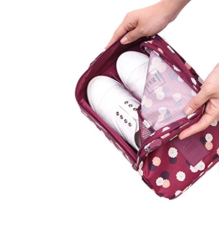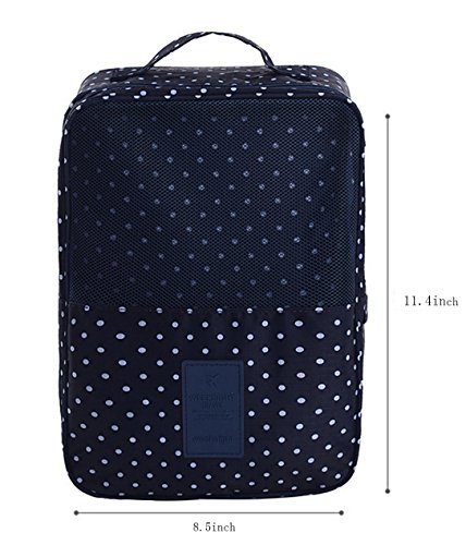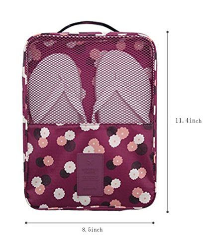 Product Description The shoe bag of iSuperb is made of high quality waterproof nylon , practical and durable. The size is 11.4x8.5x5inch(29x21.5x13cm), hold 3 pairs of shoes and fit for 9.5 size. Zipper closure is a good design and very convenient. With handle, you can carry easily. Four colors for choosing. You can take to travel, to the beach. It can also be used as a bag ,you can be put swim suit or underwear in it 0