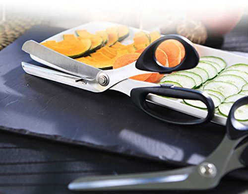 키친 가위세트에는 커팅 보드《시자》,다이스《시자》,미토《시자》,김치《시자》가 포함됩니다.커팅 보드 가위에,커팅 보드 없이 간단하게 재료를 컷에 옵니다.그러므로 당신은 보드와 나이프를《촛핀구》하기 위한 여유를 만들 필요지는 않고, 요리 후에 씻어 하십시오.정확히 커팅 보드 가위를 사용하는 것 를 할 수 있습니다.가위인의 한 쪽 면으로 지지 판이 어느(있는) 때문에,소재를 보드에 붙이고, 보드나 나이프를 잘게 써는 일 없이 간단하게 잘라내는 것 를 할 수 있습니다.슬라이스 한 후에 다이신《구》한《시자》에 간단하게 다이스 하는 것 를 할 수 있습니다.또한고기의 가위에 당신은 생의 고기나 조리 된육을 자른다.통상은,대부분의 가위에 생의 고기를 컷 하기 힘들이지만,이것은 예쁘게 컷 됩니다. ''''《촛핀구보도》가위''''의 사용법 01부속 커팅 보드 안 측에 커팅 material을 넣고 컷하면 커팅이 간단 입니다.02커팅 보드 바닥을 손가락으로 떠받친 후,간단하게토막 쉽게 됩니다.03사용 직후에 헹구는 것을 권장합니다. ''''다이스《시자》''''의 사용법 01커팅 보드 가위를 사용하고, 적절한 두께의 재료를 컷 합니다. 02 1?3매의 컷재를 준비해 가위에 걸(걸치)습니다.03재료의 끝부터 소조각을 잘라낸다.04사용 직후에 헹구는 것을 권장합니다.