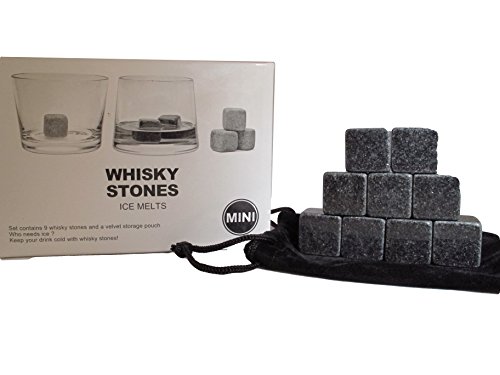 -. Brand : MINI -. Color : Black -. EAN : 0742574208344 -. Feature : QUALITY CONSTRUCTION - The set comes with 9 black marble sipping stones with rounded edges. These stones will not scratch your favorite drinking glass. As a bonus, a velvet pouch is included as well! / EASY TO USE AND STORE - Simply store these in the included velvet pouch in the freezer for 4 hours before each use. A quick rinse under running water will sufficiently clean them. / WON'T DILUTE YOUR DRINK - These marble sipping stones will not water down your drink the way ice does. / CHILLS PERFECTLY - These sipping stones will cool your drink to the optimal drinking temperature. -. PackageQuantity : 9 -. ProductGroup : Kitchen -. ProductTypeName : KITCHEN -. Title : MINI Brand - Premium Black Marble Whiskey Sipping Stones - Set of 9 per box with velvet pouch. Chill your alcohol without diluting it! -. UPC : 742574208344