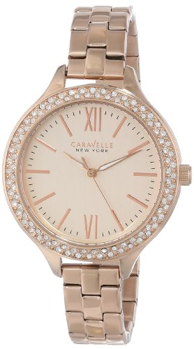 -. Binding : Watch -. Brand : Bulova -. Color : Rose/Rose Gold -. Department : womens -. EAN : 0042429507784 -. Feature : Round watch in rose gold-tone stainless steel with crystal-set bezel and Roman numeral and notch hour markers / Japanese quartz movement with analog display / Mineral crystal dial window / Jewelry-clasp closure / Water resistant to 99 feet (30 M): withstands rain and splashes of water, but not showering or submersion / Quartz movement / Mineral flat crystal / Rose gold dial / Stainless steel case and bracelet / Water resistant to 99 feet (30 M): withstands rain and splashes of water, but not showering or submersion -. Label : Caravelle New York -. Manufacturer : Caravelle New York -. Model : 44L125 -. MPN : 44L125 -. PackageQuantity : 1 -. PartNumber : 44L125 -. ProductGroup : Watch -. ProductTypeName : WATCH -. Publisher : Caravelle New York -. ReleaseDate : 2013-12-17 -. Size : Standard -. Studio : Caravelle New York -. Title : Caravelle New York Women's 44L125 Analog Display Japanese Quartz Rose Gold-Tone Watch -. UPC : 042429507784