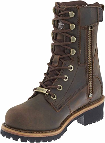 Studio : Wolverine Publisher : Wolverine Product Description Harley-Davidson® Women's Riding Appropriate* Tyson Brown leather Logger lace-up motorcycle boots. Designed with metal reinforced eyelets and four speed hooks for fast and secure lacing at the top. A metal logo badge is also on the bottom lace. Metal Harley® Bar Shield Logo badging on sides. 3MTM reflective materials helps to be seen at dawn, dusk or night, in all weather conditions. Uppers made from the best full grain leather available with a removable full-length soft cushioned lining, affording hours of care-free wear. Features industry's best YKK® locking inside zippers with Velcro® closures for ease of putting on and taking off. Vibram® rubber is used for the logger designd outsoles, rated for abrasion, slip, and oil resistance, affording optimum traction, comfort and maximum performance. The boot's sole, insole and upper are bound using resoleable Goodyear® Welt construction processes, the most labor intensive and durable construction method available. Total height: 8.75'; Shaft height: 7', Heel height: 1.75'. Manufacturer Part Number D87088. See D87016 for the Black version of this boot. *Riding Appropriate-Welt construction, abrasion, slip, and oil-resistant, re-soleable footwear ideal for riding motorcycles. 0