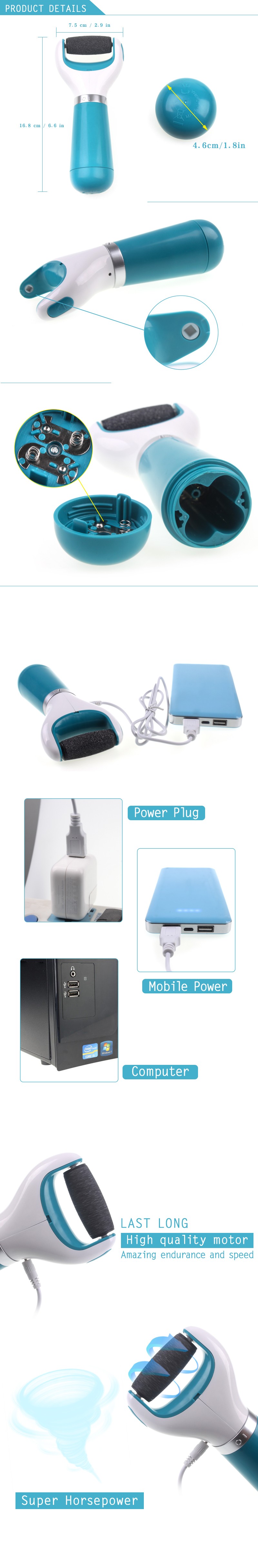 velvet smooth Feet With USB Power + 2 Replacement Roller Heads Electric Foot Care Tool /pedicure/file for the legs