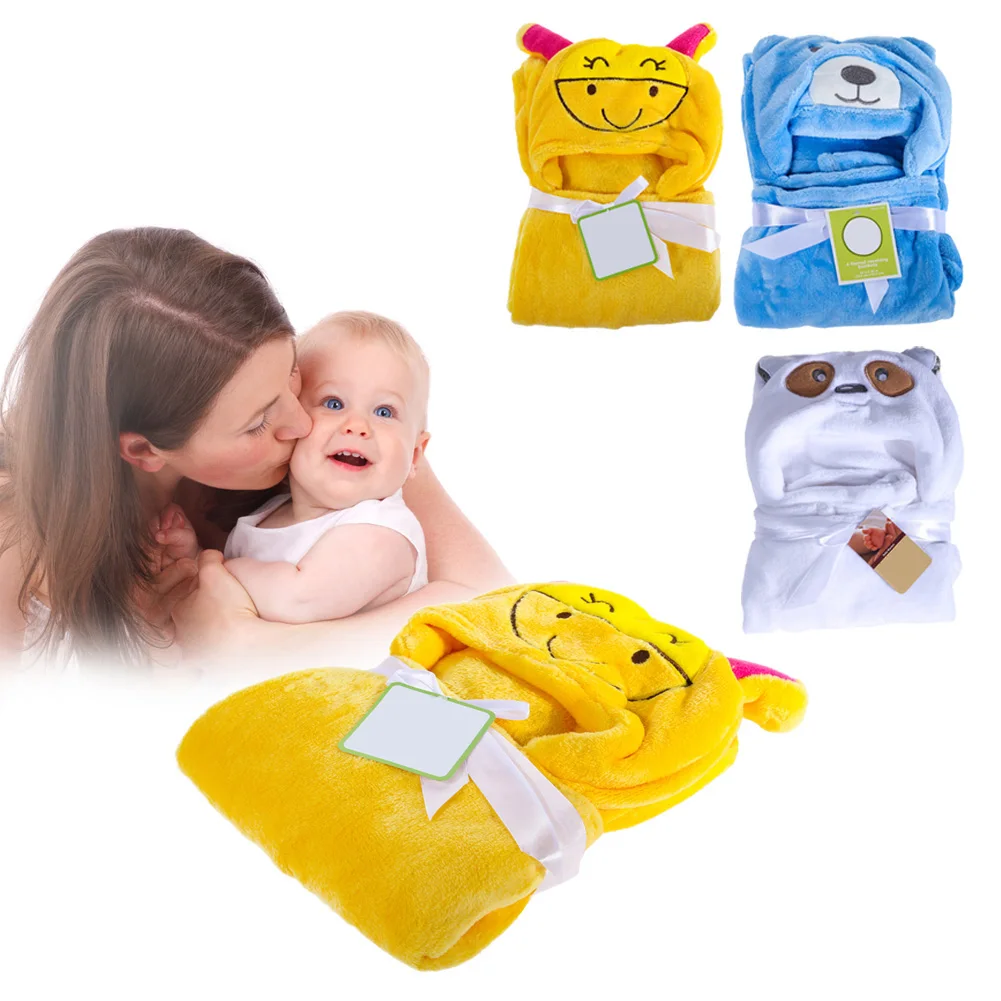 Wholesale Free Shipping Cute Animal Flannel Blanket Cartoon Baby Kid's Hooded Bath Towel Children Toddler Blankets