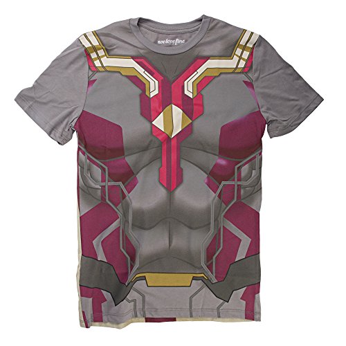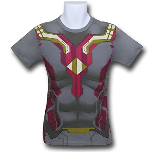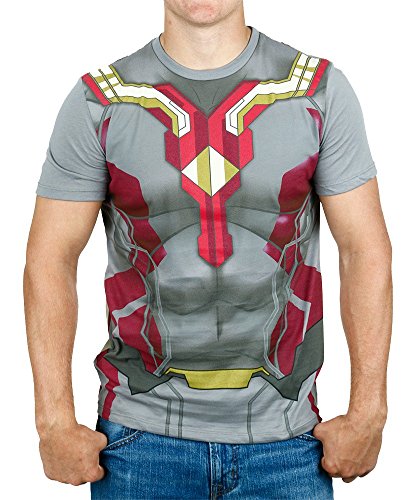 Product DescriptionThe 50% cotton 50% polyester Vision Age of Ultron Costume T-Shirt is a front/back print shirt inspired by Paul Bettany's character from Avengers 2!0