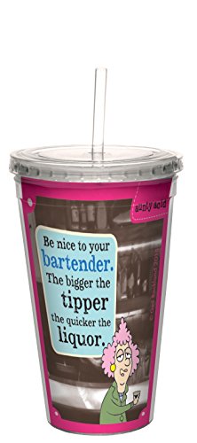Tree-Free Greetings 16-Ounce Cool Cup with Reusable Straw, Aunty Acid Nice to Bartenders (CC98557)