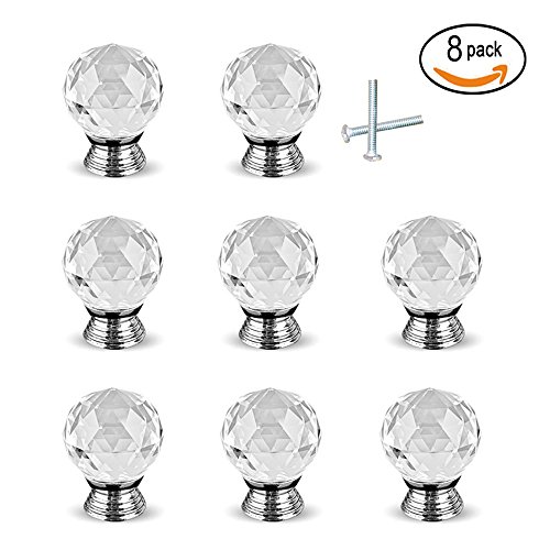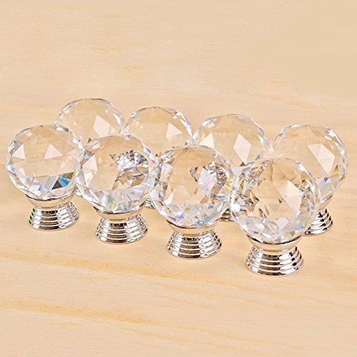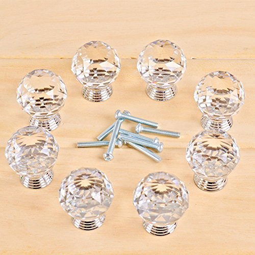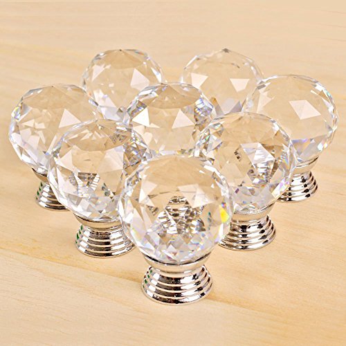 Drawer Knob Pull Handle Crystal Glass Diamond Shape Cabinet Drawer Pulls Drawer Kitchen Cabinet Knobs (40mm, 8 Pack)