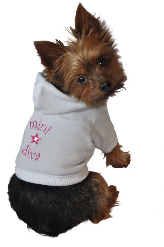 -. Title : Ruff Ruff and Meow Dog Hoodie, Mini Diva, White, Small