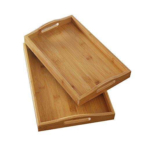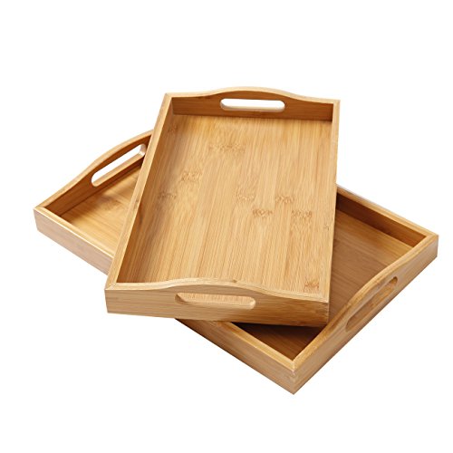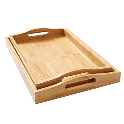 (Scenic spot)/Kitchen Dining/Tableware/DIRECT FROM USA/2 pc Bamboo Breakfast Bed Trays (Rounded) | Cut Out Handles | Set of 2 | Bamboo | Nesting