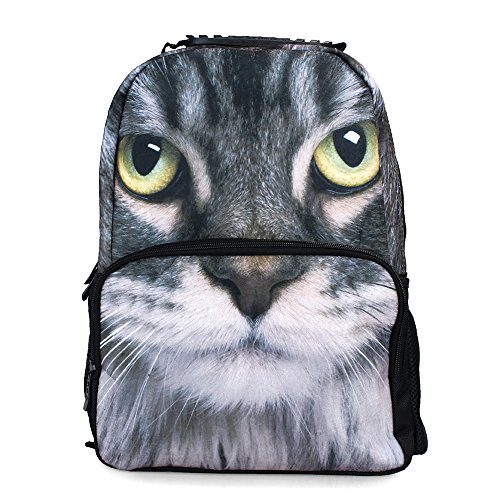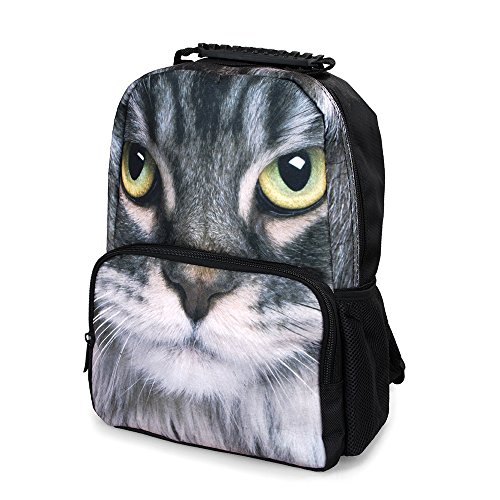 -. Feature : Dimensions: 16.53" x 11.41" x 7.08" (LxWxH); 520g/1.15 LB / Vivid 3D animal head pattern design, eye-catching and impressive. Durable lightweight backpack very suitable for the children. / Backpack offers a single main compartment and a front pocket with zipper closures, and two water bottle pockets on sides. / Rubber top handle and wide padded adjustable shoulder strap, durable and comfortable to carry, padded bottom to protect stuff safely. / Ideal for: Back to school, go to Disneyland, Summer camps, Sports activities, Travel, Picnics, etc.