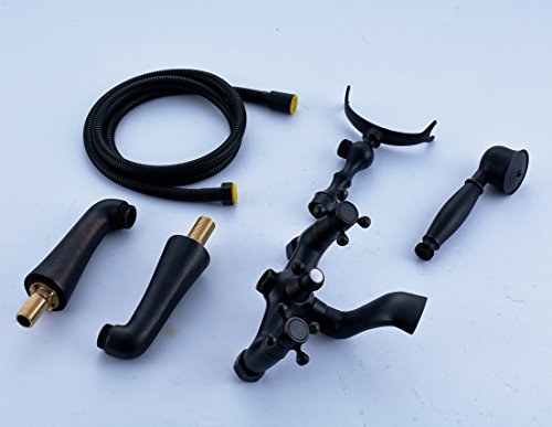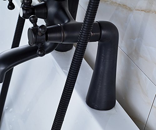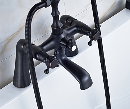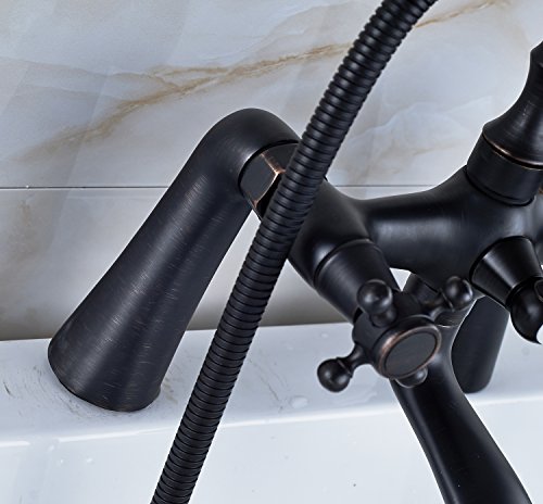 Rozin Deck Mount 2 Holes Bathtub Faucet Oil Rubbed Bronze Dual Handle Mixer Tap with Hand Shower