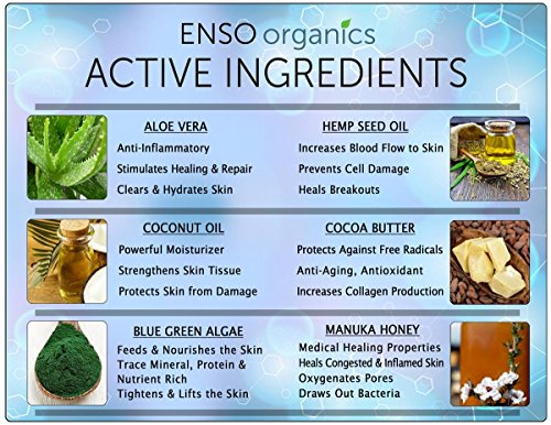 -. Feature : NATURAL and NUTRIENT-RICH: Potent organic ingredients create a SUPERFOOD for sensitive skin. Aloe Vera, Manuka Honey, Coconut Oil, Cocoa Butter, h.e.m.p Seed Oil, Blue-Green Algae are packed with all the vitamins, trace minerals, amino acids, and antioxidants the skin needs to HEAL on a cellular level, leaving a smoother and more radiant complexion. / BALANCED: 5.5 pH is a KEY factor for healing, moisturizing and caring for sensitive skin. Many soaps and detergents destroy the skin's natural pH, leaving it dry, dull, and prone to irritation. Enso's Repair Cream is pH balanced at 5.5, to combat the signs of aging and rejuvenate the skin. / CONCENTRATED: NO water, NO toxic fillers. Our thick, Rich, Non-Greasy Formula absorbs fully leaving NO residue, just healthy, glowing skin. / SIMPLE and PURE: NO alcohol, NO pore-clogging mineral oil or petroleum, NO toxic dyes, chemicals or harsh preservatives, NO parabens or fragrance. Non-Allergenic, Non Comedogenic, CRUELTY FREE and never tested on animals. / INTEGRITY: Lacking nothing, nothing to excess is the ancient Enso P.R.Inciple on which this company was founded. Enso Organics is family owned and operated. All our products are made in the USA to exacting standards. We are dedicated to your satisfaction and we love to hear from our customers.