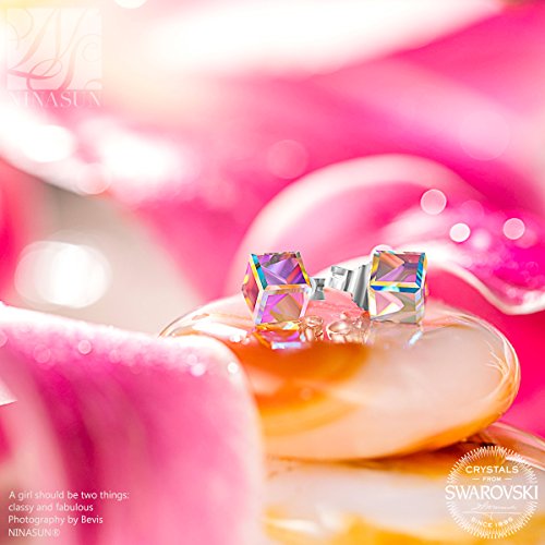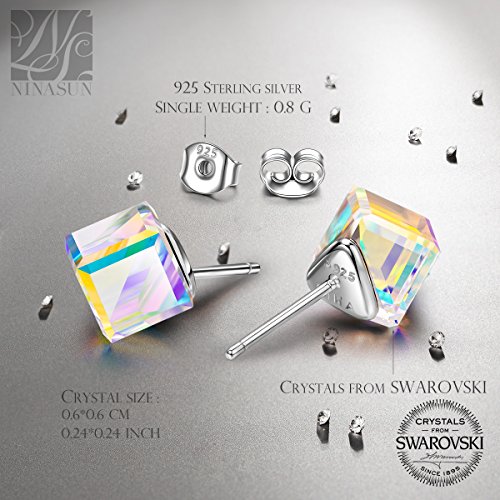 -. Title : Fine Jewelry NINASUN "Hooked On You" 925 Sterling Silver Change Color Cube Stud Earrings Made with SWAROVSKI Crystals