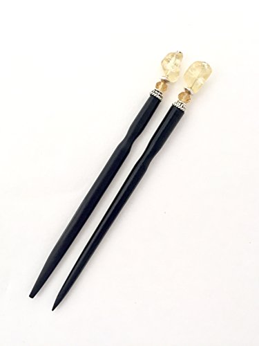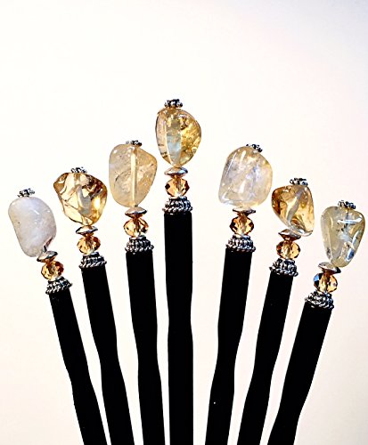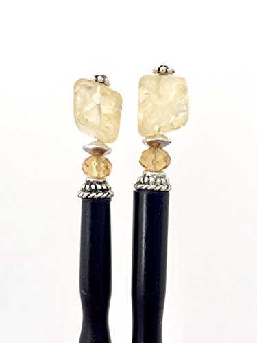 Studio : Lakeside Studio Publisher : Lakeside Studio Binding : Misc. Product Description Need something to wear for that next music festival or do you just want to dress up your messy topknot? Try the "Layla" Tidal Hair Sticks. Semi-precious citrine stones adorn the tops of these trendsetting Hair Sticks. Fun fact: Citrine is known as the lucky "Merchant's Stone"- it is believed to assist in acquiring wealth and prosperity. Make sure to have one next time you buy a lottery ticket! Handmade in Richmond, VA Sold in a set of 2, but you can wear them individually if preferred. Variations in color, shape and size are expected with natural stone beads. Base is 4 1/2 inch laquered wood. When styling, hold the hair stick by the base and not the beaded end. 0