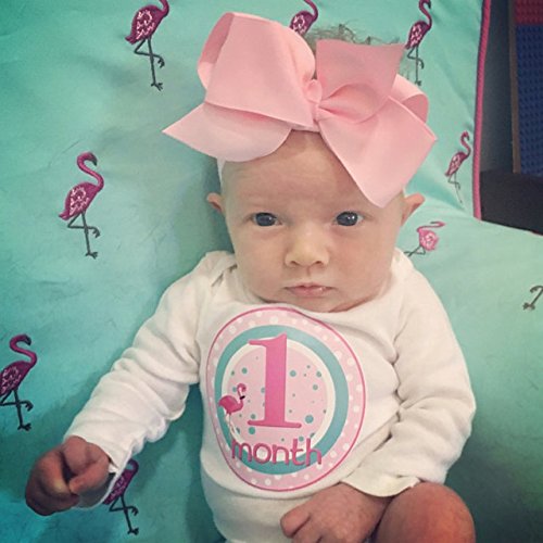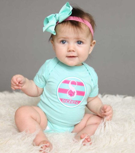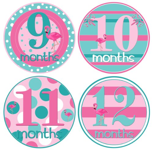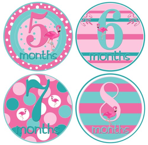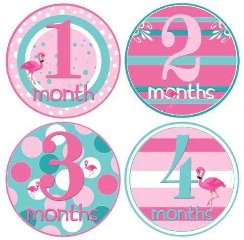 PINK FLAMINGO SHORE STYLE – These baby growth stickers come in tropical girl colors—light pink Aqua and Raspberry—and easily match clothes or background layouts