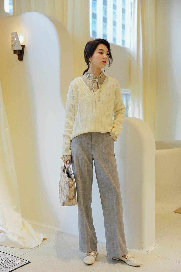 女性らしい色合いで、フェミニンなブラウスやニットと合わせたきれいめコーデがオススメ!