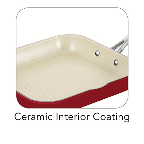 Tramontina Gourmet Ceramica_01 Deluxe Metallic Red Cookware is made of heavy-gauge cold-forged aluminum, features a smooth, ceramic interior and exterior nonstick coating, which provides simple healthy cooking, effortless cleaning and outstanding durability. The soft-grip, cast stainless steel handles ensure comfort and stability when handling cookware. The Ceramica_01 Deluxe is part of the Tramontina Gourmet collection, a series of premium products engineered and manufactured with the finest design, materials and workmanship, outperforming similar products within the market and delivering the best quality and value to the cooking professional and enthusiast alike. Dishwasher and oven-safe (up to 350 Degree Fahrenheit or 176 Degree Celsius) and compatible with gas, electric and ceramic glass cooktops. Lifetime Warranty. Made in Italy, assembled and packaged in the USA.Feature