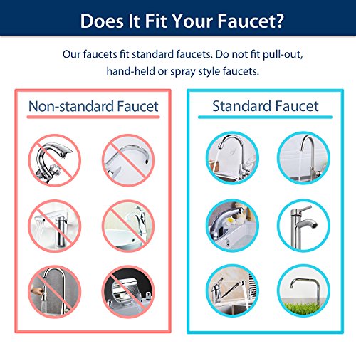 - HASSLE-FREE INSTALLATION: The filtered water faucet adopts leak-proof technology and can be attached to your faucet very easily. **This faucet filtration system fits standard faucets. Does not fit pull-out, hand-held or spray style faucets. Please verify if our product suits your faucet before the purchase.