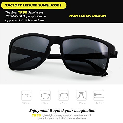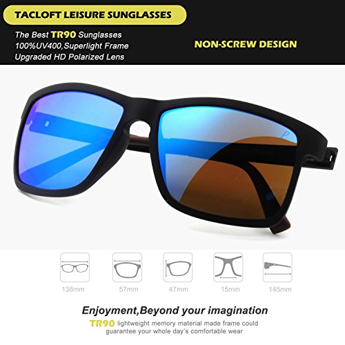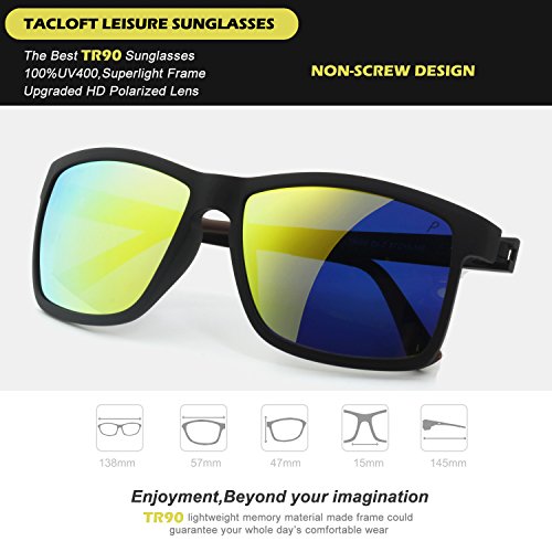-. Feature : HD TAC polarized lens reduce glare reflected off of roads, bodies of water, snow, and other horizontal surfaces. Restore true color, eliminate reflected light and scattered light and protect eyes perfectly / Superlight TR90 Frame Design: ideal of usage for everyday; impact protection, scratch resistant of unbreakable sunglasses / UV400 PROTECTION- Lenses block 100% Harmful UVA & UVB Rays. UV 400 indicates an eye protection item that has been optimized to prevent eye exposure to both UVA and UVB radiation / Perfect for outdoors: cycling bicycle, driving, riding a motorcycle, running, fishing, racing, skiing, climbing, trekking etc / 30 DAY MONEY BACK GUARANTEE; 1 Year Breakage Warranty on frame & lens