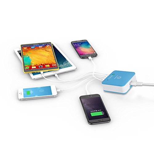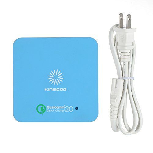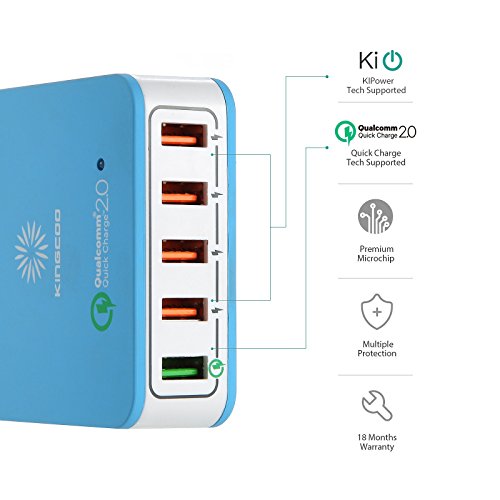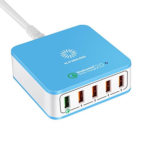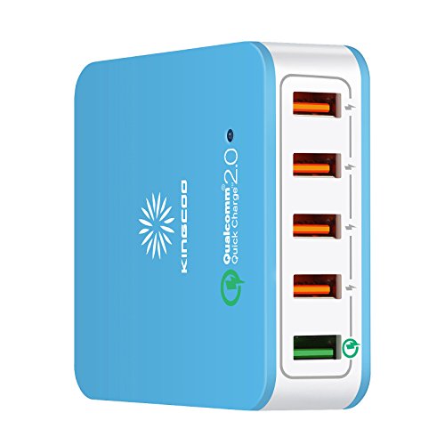 Quick Charge 2.0 Desktop Charger, [Qualcomm Certified] KINGCOO 40W 5-Port USB Charger Desktop Charging Station Wall Charger USB Power Adapter (Quick Charge 5V/2.4A 9V/2A 12V/1.5A) - Blue