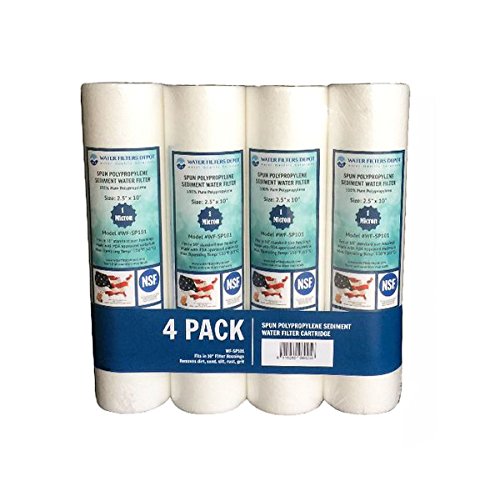 WF-SP101 2.5"x10" 1 Micron Sediment Water Filter Cartridge, Spun Polypropylene by Water Filters Depot (WFD), Fits in 10" Standard Size Housings of Undersink RO or Filtration Systems (4 Pack)