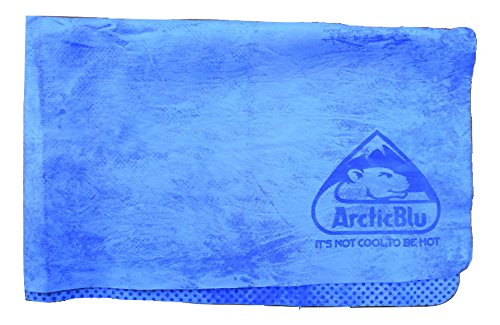 Blue Cooling Towels by ArcticBlu are unique. They are unlike any other product on the market. The towel is 27 x 27in. The towel on one side is as smooth as a baby seal. While the other side sports a waffle like dimple design to give a comforting texture to the skin as it applies a refreshing cool relief to the body. The towel is woven with a proprietary blend of organic and synthetic material that give the towel more texture, stability and durability than any other. Because of its unique design the towel is able to suspend the water for longer periods of time thus the ArcticBlu Blue Cooling Towel stays colder longer. The towel comes in a reusable container that allows for easy transportation. The ArcticBlu Blue Cooling Towel is exactly what it says it is. It is a soft cloth-like towel that is engineered to keep you cool. When submerged into water, the towel gets cold in a matter of seconds, and remains that way for approximately 4-6 hours. Most of the details of the "genetic make-up" of the product are proprietary in nature; however the product is designed to make the competition obsolete. Our product is made to last! It can be washed and re-used. The possibilities for this product are endless. Unique design permits towel to hold water longer, and stay cool longer.