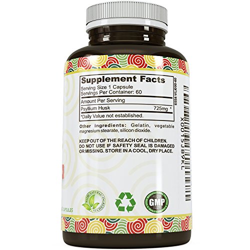 "California Product's Psyllium Husk Gluten Free Capsules provide 725 mg of healthy soluble fiber. They are highly recommended for digestive health and colon-cleanse regimens. Cleanses, especially ones done with natural herbs and plants, are a great way to feel healthier, lighter and more energetic. Psyllium Husk is also useful in weight loss and dietary support; those who eat low- or no-carb diets often lack the soluble fiber they need to keep cholesterol levels healthy and keep their appetites in check. Psyllium Husk Fiber is a simple solution. It is and easy, affordable way to add necessary and healthy fiber to low-carb diets. How does it work? The fiber of the Psyllium Seed Husk binds with water in the digestive system and creates a bulking gel. This helps food move through the GI tract smoothly and easily, while at the same time satiating the appetite and removing LDL cholesterol so it cannot be absorbed into the blood stream. Our formulation goes down easy and works quickly, so that you can feel the benefits right away. Add some soluble fiber to your diet and try California Product's Psyllium Husk Capsules. Your heart will thank you! As always, we promise a 100% refund if you are not satisfied with our natural Psyllium Husk capsules."Feature