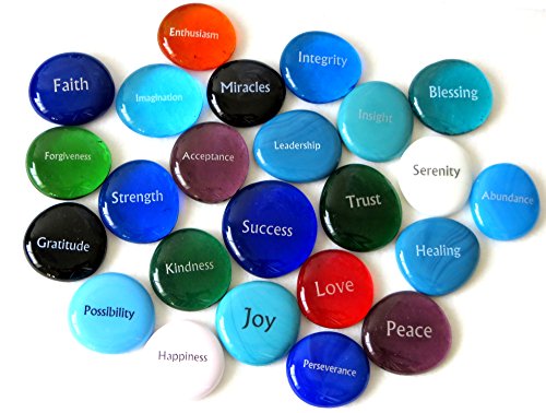 Focus Glass Stones, 24 Inspiring, Encouraging and Motivating Single Words Imprinted on Glass Stones. By Lifeforce Glass, Inc. Set I.