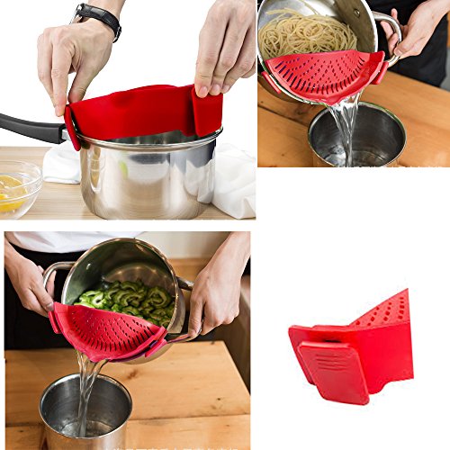The New Kitchen Clip-On Strainer, Green Vegetables Strainer, Pasta Strainer, Colander & Drainer Compact siliconeclip, Grease Colander, Fits all Pot Bowls Sizes (red)
