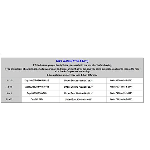 Size Details: Size:S----Cup:?30A/30B/32AA/32A/32B--Under Bust:68-72cm/26.7-28.3"---Waist:66-70cm/25.9-27.5" SizeM----Cup:32C/32D/34AA/34A/34B---Under Bust:72-76cm/28.3-29.9"---Waist:70-74cm/27.5-29.1" Size:L----Cup: 34C/34D/36A/36B-----------Under Bust:76-80cm/29.9-31.4"---Waist:74-78cm/29.1-30.7" Size:XL--Cup:36C/36D------------------------Under Bust:80-84cm/31.4-33"------Waist:78-82cm/30.7-32.2" Feature: Gender: Women Season: Summer Occasion:?Daily,Swimming pool ,Sea Material:?Polyester Decoration: None Clothing Length: Regular Pattern Type:?Solid Style:?Sexy,Causal Package include:?1 PCSwimwear??(Containing Chest Pad) Notes: Please check the size chart carefully before purchasing. This shirt is1-2 size smaller then US size. It would be better for you to choose 1-2 size larger. The real color of the item may be slightly different from the pictures shown on website caused by many factors such as brightness of your monitor and light brightness. Please allow slight (±2cm)manual measurement deviation for the data. About Commodities: ★1. There may be a little difference of the color between the picture and the real goods because of the pixel. We hope you can understand sincerely. ★2. Please allow slight deviation for the color and measurement. Thanks. ★3. The goods will be delivered to you about18-25 days, if you need it in urgency you can choose DHL, the delivery time is 3-5 days. Please contact us if you have question about the delivery ★4.My store updates often, you are welcome to visit here at any time.? 0 |