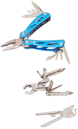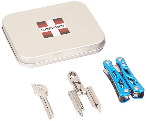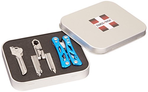 Swiss+Tech ST20023M2 Men's Gift Sets of 3 with Utility Key Tool, Micro Pocket Multitools for Outdoors, Sports, Hardware - 2 Pack, Polished Stainless Steel/Blue