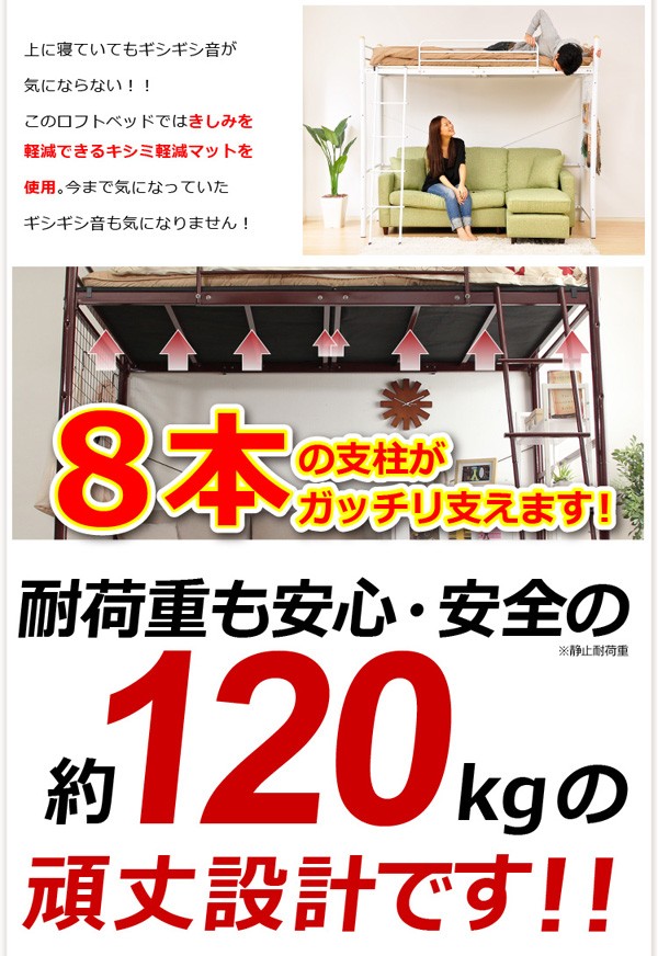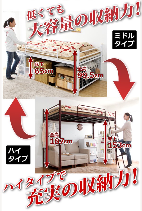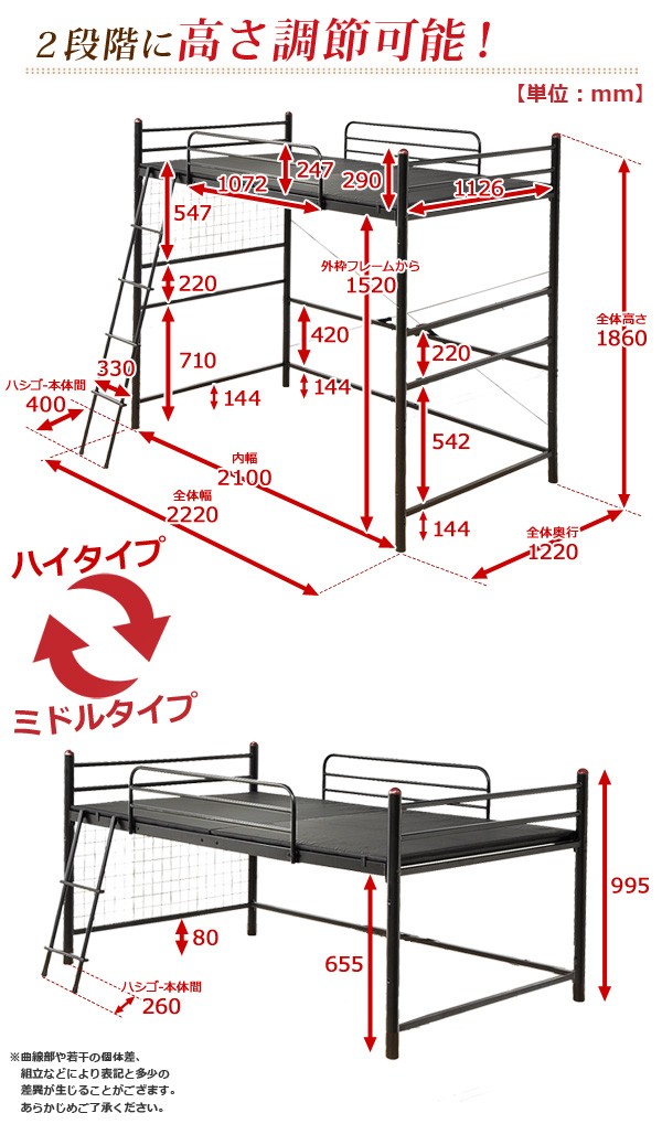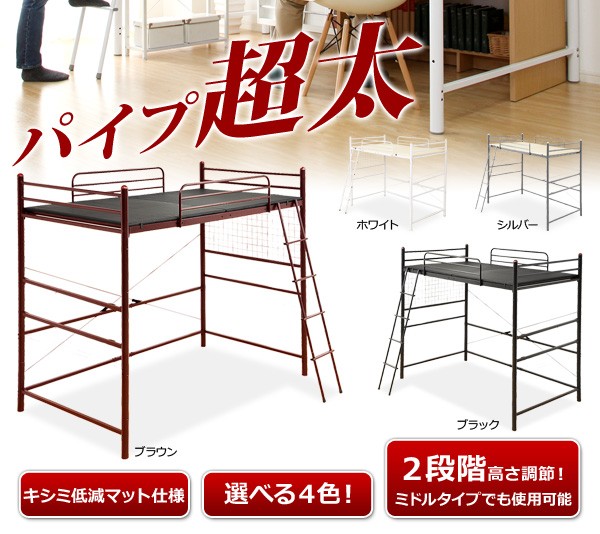 【商品について】高さ調整可能な極太パイプ ロフトベット 【ORCHID-オーキッド-】 セミダブル■サイズ:外寸:外寸:(約)ハイタイプ:幅220cmx奥行き122cmx高さ186cmミドルタイプ:(約)幅220cmx奥行き122cmx高さ99.5cm※商品重量:(約)66kg■カラー:ブラック ブラウン シルバー ホワイト■素材:スチールパイプ■その他:お客様組立商品です梱包サイズ:2梱包でのお届けです。(約)(1/2)(約)105x131x21cm(10.6才)(2/2)(約)117x125.5x11cm(5.9才)梱包重量:(約)67kg ※メーカー直送品、商品代引き不可