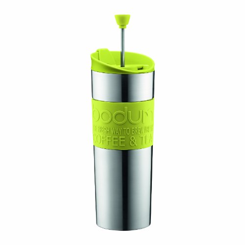 A good cup of coffee or tea is always at your fingertips with the Bodum Travel Coffee and Tea Press. Made of vacuum-sealed, double-wall stainless steel with a colorful, silicone, non-slip grip, this travel press lets coffee lovers enjoy their daily fix on the go. It's quick and easy to use: add coarsely ground coffee, pour in hot water, seal the lid and take it to go. After 4-minute, regardless of where you are, press down on the plunger and enjoy. For those that prefer tea, the Bodum Travel Coffee and Tea Press works equally as well. The Bodum Travel Coffee and Tea Press keeps beverages hot or cold for several hours while maintaining the aroma and flavors of a freshly pressed cup.