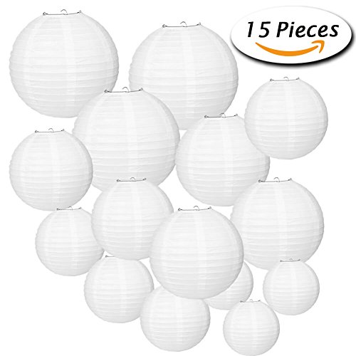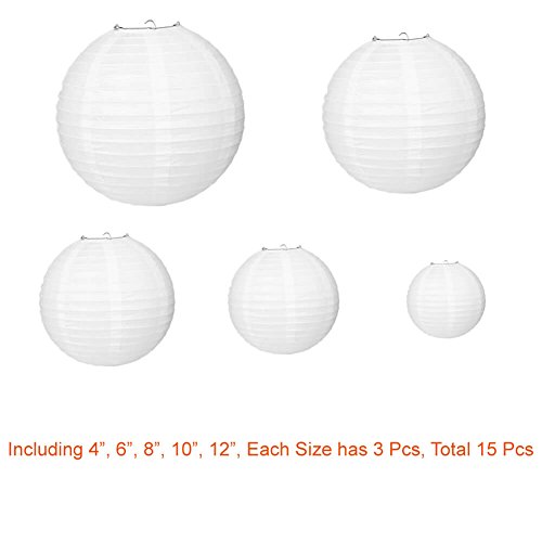 Paxcoo 15 Packs White Round Paper Lanterns with Assorted Sizes for Wedding Party Decorations