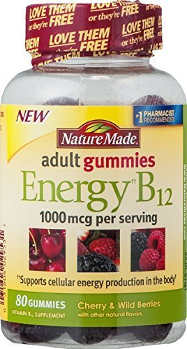 -. Binding : Health and Beauty -. Brand : Nature Made -. EAN : 0760488371985 -. Feature : Made with natural fruit flavors that adults prefer, Nature Made Adult Gummies are a great tasting way to take your vitamins / Nature Made -. IsAdultProduct : 0 -. Label : Nature Made -. Manufacturer : Nature Made -. MPN : Nature Made -. PackageQuantity : 2 -. PartNumber : Nature Made -. ProductGroup : Health and Beauty -. ProductTypeName : HEALTH_PERSONAL_CARE -. Publisher : Nature Made -. Size : Pack of 2 -. Studio : Nature Made -. Title : Nature Made Energy B-12 Adult Gummies Cherry & Wild Berries - 80 Gummies (Pack of 2) -. UPC : 760488371985
