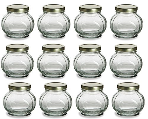 Nakpunar 12 pcs, 4 oz Round Glass Jars for Jam, Honey, Wedding Favors, Shower Favors, Baby Foods, Canning, spices