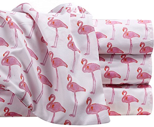 Hedaya Home Fashions Microfiber Sheet and Pillowcase Set, Queen, Flamingos Watercolor