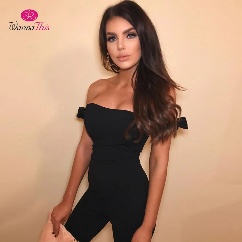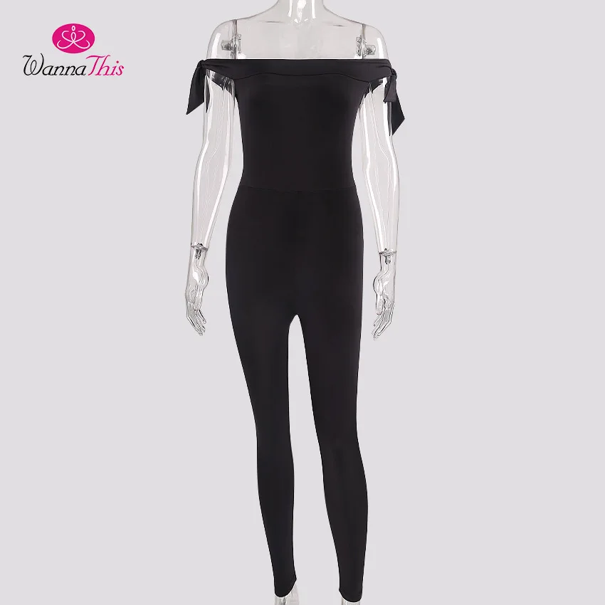 Item Type: Jumpsuits & Rompers Gender: Women Brand Name: WannaThis Pattern Type: Solid Type: Jumpsuits Model Number: 72186 Style: Casual Fit Type: Skinny Fabric Type: Knitted Decoration: Bow Length: Full Length Material: Polyester Color: Black Size: S M L