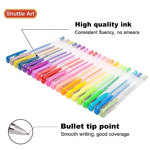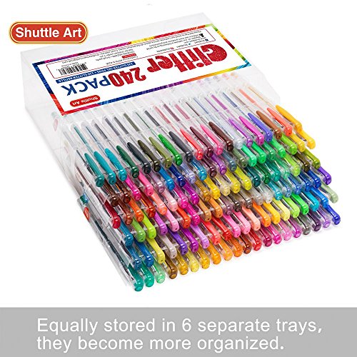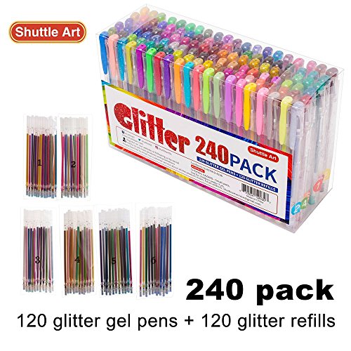 - THE MOST COLORS of single GLITTER pack: Shuttle Art 120 Glitter Gel Pens contains 120 INDIVIDULE glitter + neon glitter colors, enjoys the most on Amazon! Each pen enjoys a unique color, which brings much more fun for Adult book Coloring, Scrap booking, Sketching, Doodling, Drawing, Writing, and all the other art designs.