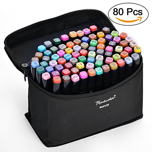 80 Colors Marker Pen Set, AGPtEK Permanent Dual Tips Marker Pens Art Markers with Zipper Carrying Bag, Ideal for Kids Adults Drawing, Sketching, Highlighting & Underlining