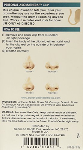 -. Binding : Health and Beauty -. Brand : Aromaid -. Feature : Used to promote a deep sense of calm and relaxation in body and mind especially for those who want to get to sleep or stay asleep / The natural benefits of aromatherapy are delivered to users through a simple and comfortable nasal clip / Devised and tested by hospital doctors and nurses to calm and soothe their patients / Uses only pure essential oils / Created to be discreet and available in four skin tones -. Label : Balanced Health Plus -. Manufacturer : Balanced Health Plus -. ProductGroup : Health and Beauty -. ProductTypeName : HEALTH_PERSONAL_CARE -. Publisher : Balanced Health Plus -. Studio : Balanced Health Plus -. Title : Aromaid - Calm :helps to promote a deep sense of relaxation of both body and mind so that users want to get to sleep or stay asleep. Perfect for use at bedtime!