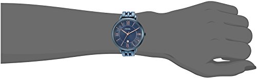 Blue metallic watch featuring guilloche dial with rose-tone hands, indices, and date window trim