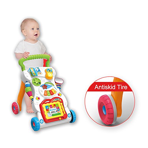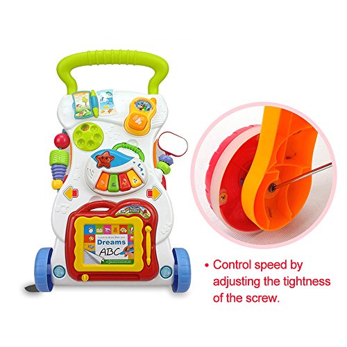 -. Feature : Made of eco-friendly material, get CE, 7P and EN71 certification, make sue its safe use. / Scientific design with perfect size, conform to ergonomic principle for kids, to prevent bow legs and knock knees. / With detachable toy mobile phone, musical box, Tablet and some accessories toys. / Interactive learning baby walker features a removable toddler play panel that develops fine motor skills. Adjustable speed control on wheels / Strictly quality control for each sit-to-stand learning walker before shipping, please reassured product quality.
