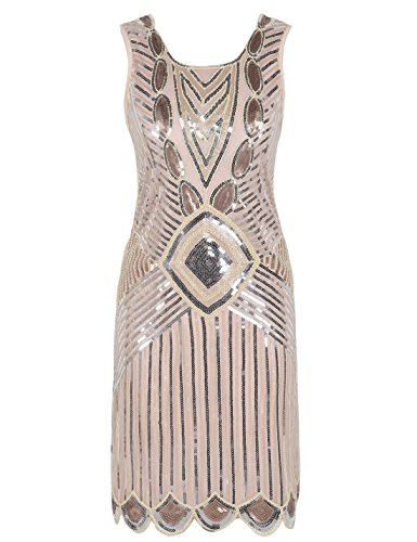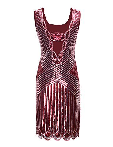PrettyGuide Women's 1920s Gatsby Sequin Art Deco Scalloped Hem Inspired Flapper Dress M Burgundy