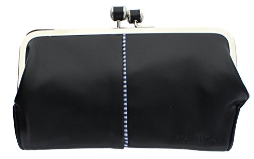-. Binding : Apparel -. Brand : Nautica -. Department : womens -. Feature : • First large compartment with striped inner lining with Twist Snap Lock and metal keychain / • Second snap clip compartment includes one open pocket, 8 credit card slots and 1 ID window / • RFID Blocking Protection Will keep your identity Safe from Thieves that can scan your wallet -. ProductGroup : Apparel -. ProductTypeName : ACCESSORY -. Size : One Size -. Title : Nautica Le Mar Soft Frame Clutch Organizer With RFID